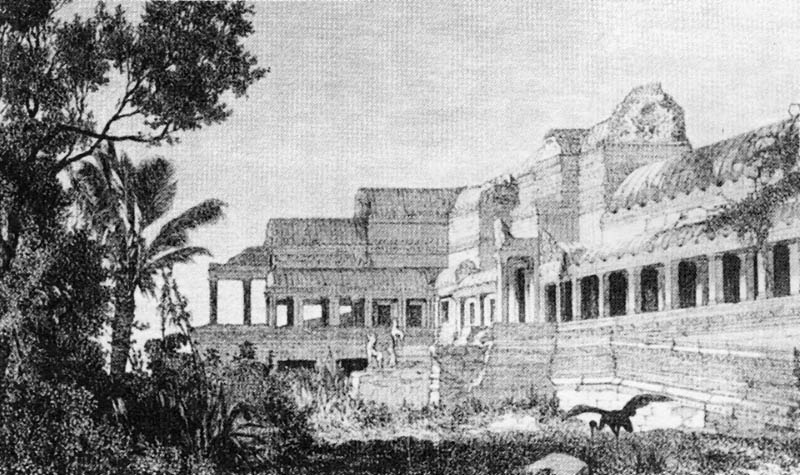 | The centre west entrance, Angkor Wat (Drawn by M. Theroud from a Sketch by Mouhot) |