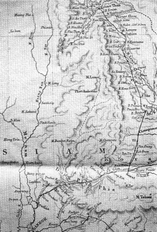 | A map to illustrate the Route and Notes of M. Henri Mouhot. 1859-61 (Published for the Journal of the Royal Geographical Society by J. Murray, London 1862). |