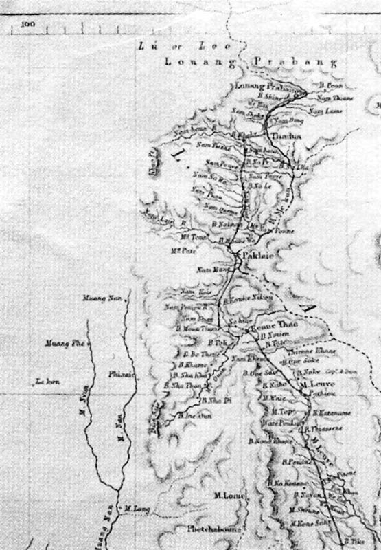 | From Kenne Thao to Luang Prabang. A map to illustrate the Route and Notes of M. Henri Mouhot. 1859-61 (Published for the Journal of the Royal Geographical Society by J. Murray, London 1862). |