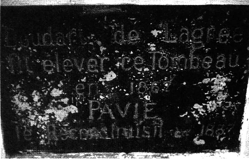 Epilogue : The monument that stands today was put up by August Pavie, the first French consul at Luang Prabang, in 1887, to replace the first, less durable, one. Three plaques on the monument commemorate Mouhot. The one on the north face, inscribed with Mouhot's name and the dates of his birth and death, was put up by Pavie. Another one, on the south side, acknowledges both of the French delegations who erected monuments. It is inscribed, 'Doudart de Lagree...fit elever ce tombeau...en 1867...Pavie... le reconstruisit...en 1887.' [Doudart de Lagree raised this tombstone in 1867; Pavie reconstructed it in 1887].